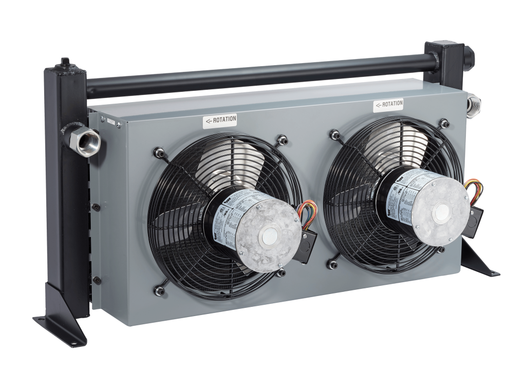 The Industrial AOC Series is a low cost cooler for basic hydraulic power unit applications. It features an AC fan drive, and is available with or without an internal bypass. The dual rated (50/60 Hz) electric motor allows for application flexibility around the globe. Removable air filters prevent air-side core blockage (clogging of fins with debris) and aggressive turbulators allow for optimal heat rejection at lower flow rates.